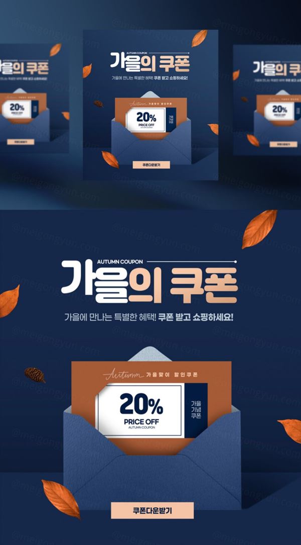 秋季促销优惠券活动网站营销弹出广告购物宣传海报PSD模板