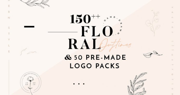 图穷联素材库 » 手绘叶子花卉线性插画 Logo设计素材包