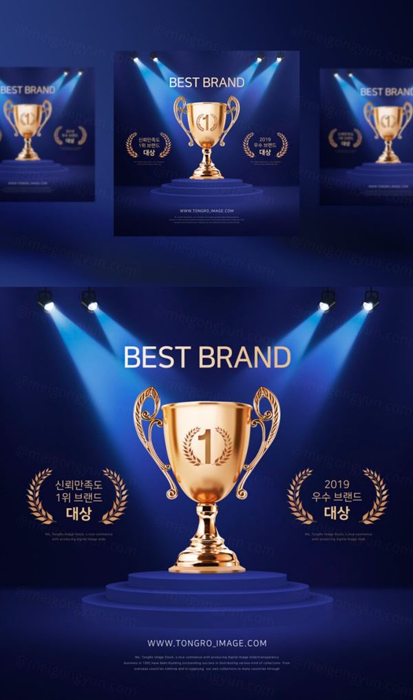 图穷联素材库 » 年度品牌奖牌评选颁奖黄金奖杯PSD海报素材 Best Brand Awards