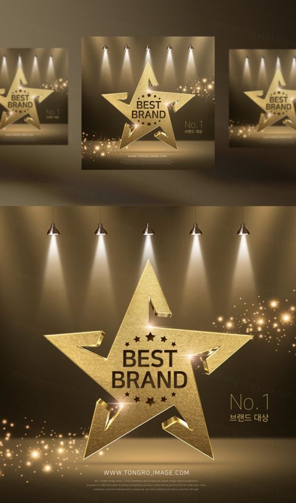 图穷联素材库 » 年度品牌奖牌评选颁奖黄金奖杯金色场景PSD海报素材 Best Brand Awards