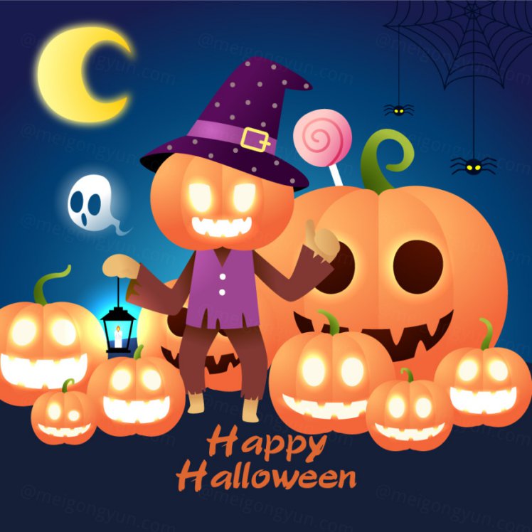 图穷联素材库 » 卡哇伊可爱万圣节装饰女巫僵尸男巫南瓜元素矢量素材 Happy Halloween