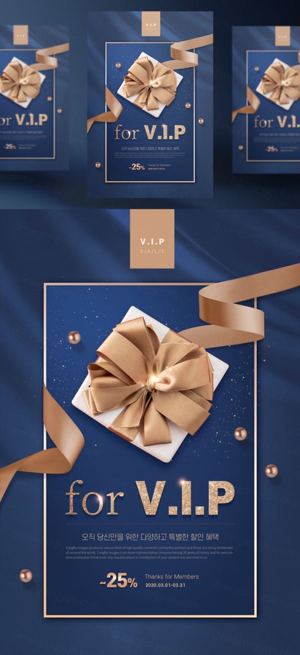 图穷联素材库 » 绝美奢华蓝金艺术风格会员日VIP专享海报PSD模板