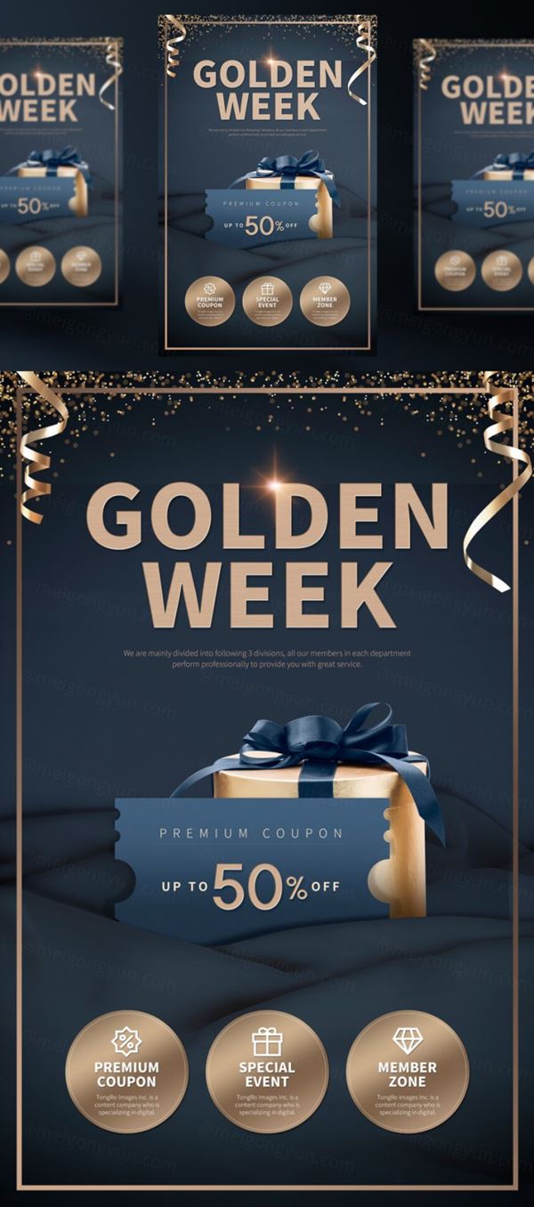 图穷联素材库 » 奢侈金色玫瑰金VIP卡会员日专享礼物海报 Golden Week For V.I.P