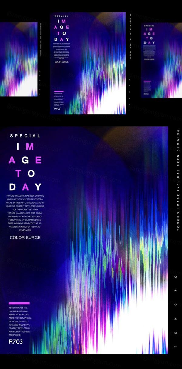 图穷联素材库 » 高端荧光炫彩信号错乱丢失抽象全息渐变光效概念海报PSD模板 Light Surge