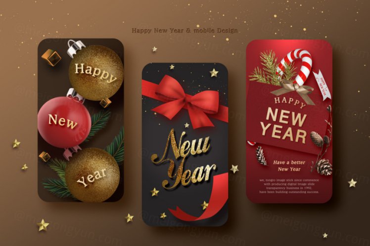 图穷联素材库 » 高质量金色圣诞节手机促销海报页面PSD模板素材