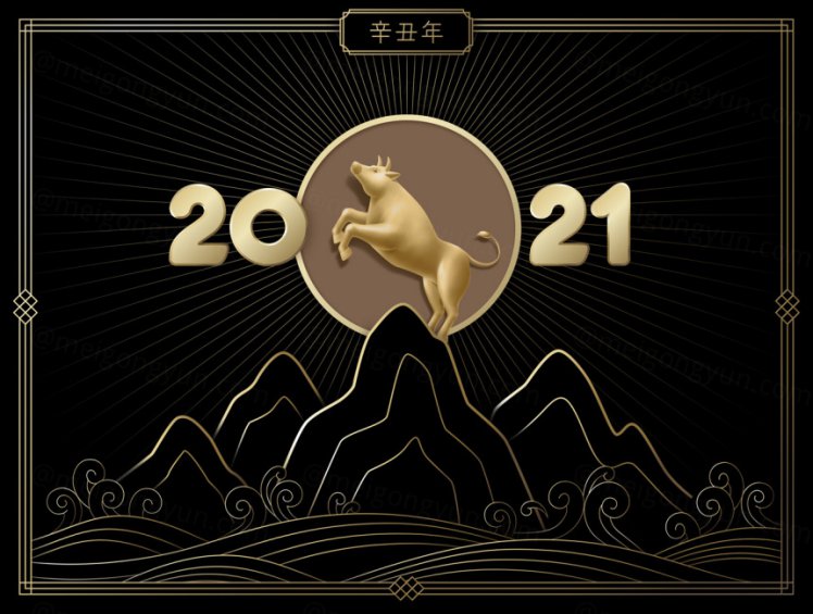 图穷联素材库 » 2021年高端黑金辛丑年牛年新年快乐3D渲染元素海报PSD模板