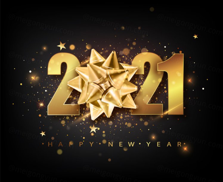 图穷联素材库 » 2021新年金色立体主题字元旦贺卡节日活动展板EPS矢量海报素材 Happy New Year