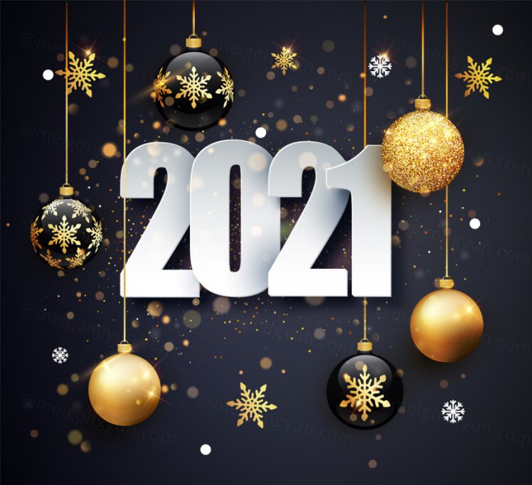 图穷联素材库 » 2021新年立体主题字圣诞球元旦贺卡节日活动展板EPS矢量海报素材 Happy New Year
