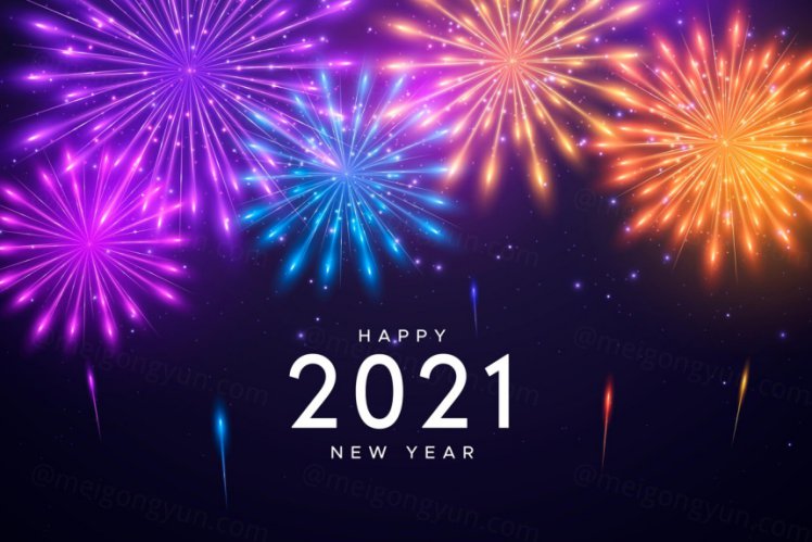 图穷联素材库 » 2021新年夜晚烟花立体主题字元旦贺卡节日活动展板EPS矢量海报素材 Happy New Year