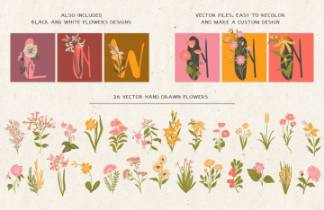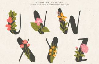 图穷联素材库 » 植物花卉装饰英文字母手绘素材 Floral Illustrated Alphabet