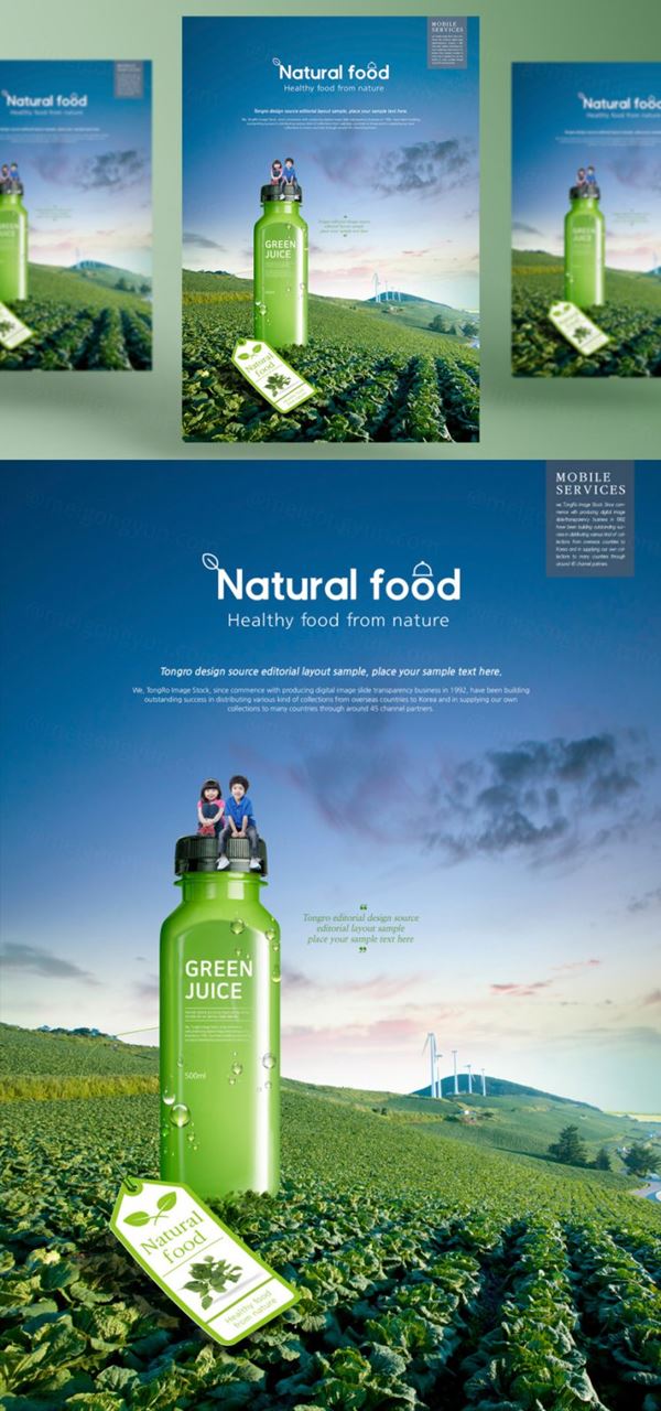 图穷联素材库 » “大自然的馈赠”农场天然茶叶绿茶有机饮料包装宣传海报广告设计PSD模板