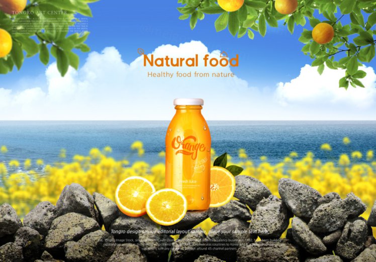 图穷联素材库 » “大自然的馈赠”农场天然橘子橙汁有机饮料包装宣传海报广告设计PSD模板