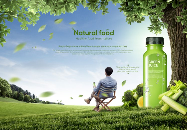图穷联素材库 » “大自然的馈赠”农场天然绿色蔬菜汁有机饮料包装宣传海报广告设计PSD模板