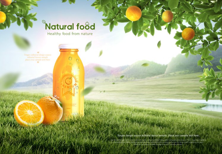图穷联素材库 » “大自然的馈赠”农场天然有机饮料包装宣传海报广告设计PSD模板
