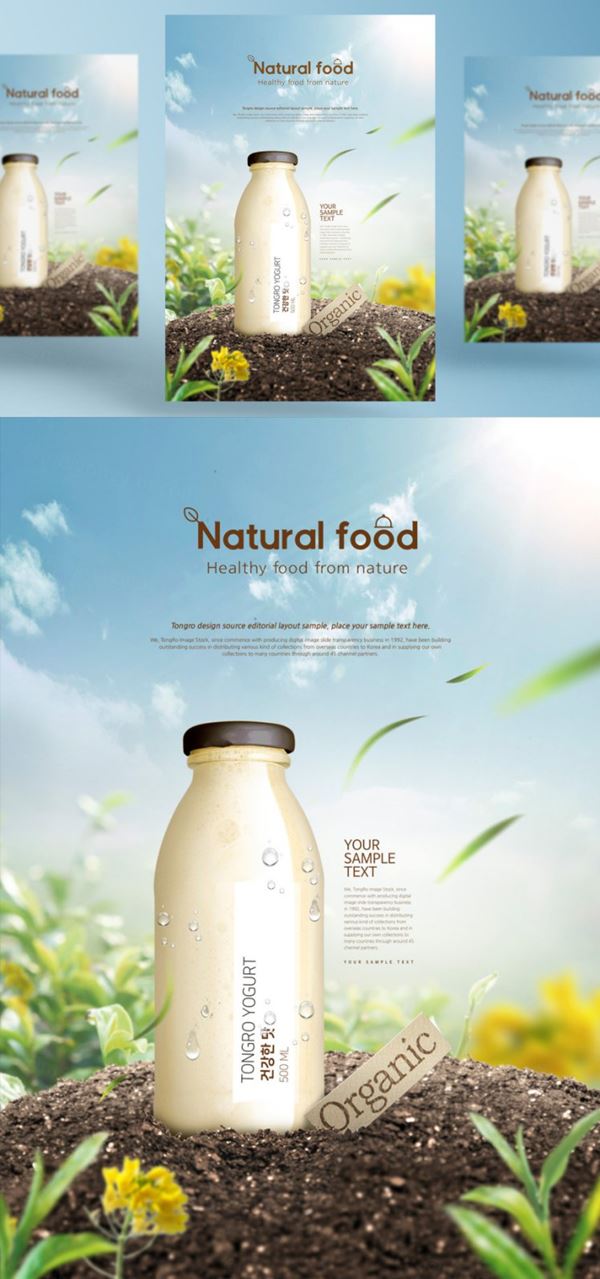 图穷联素材库 » “大自然的馈赠”农场天然有机牛奶饮料包装宣传海报广告设计PSD模板
