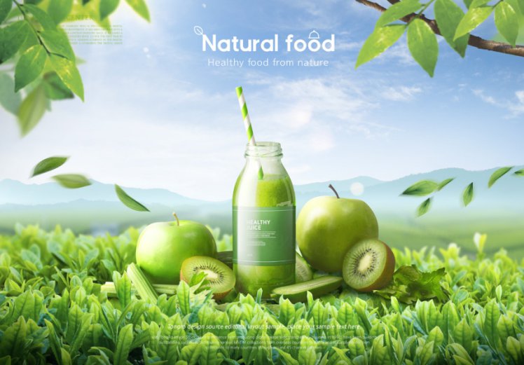 图穷联素材库 » “大自然的馈赠”农场天然绿色有机饮料包装宣传海报广告设计PSD模板