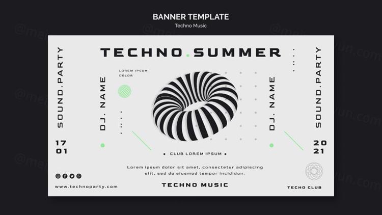 图穷联素材库 » 黑白系电音节抽象概念音乐海报传单PSD模板 Techno music festival poster template