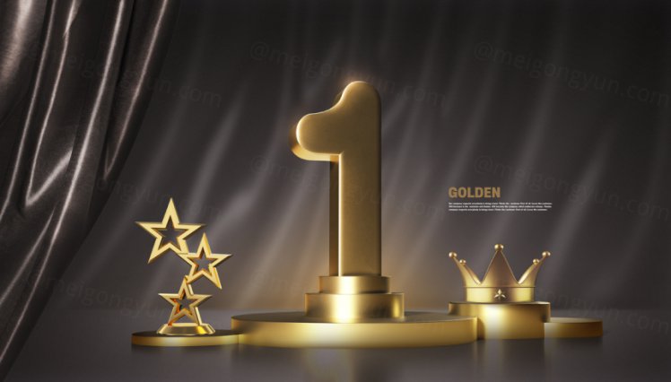 图穷联素材库 » 金色三维渲染奖杯年终获奖评选总结PSD海报模板