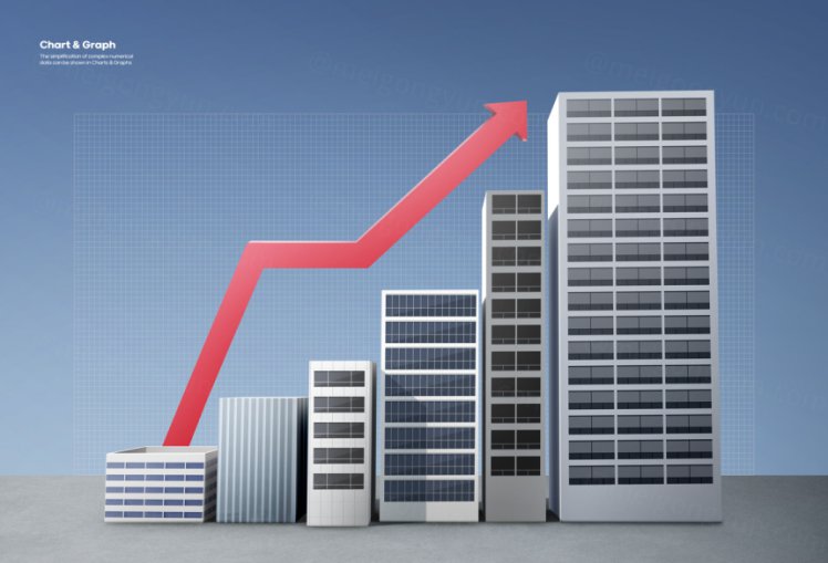 图穷联素材库 » 房地产房价上涨创意柱形图数据图表PSD商业合成海报模板素材