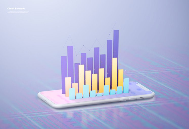 图穷联素材库 » 三维渲染创意柱形图条形图数据图表PSD合成海报模板