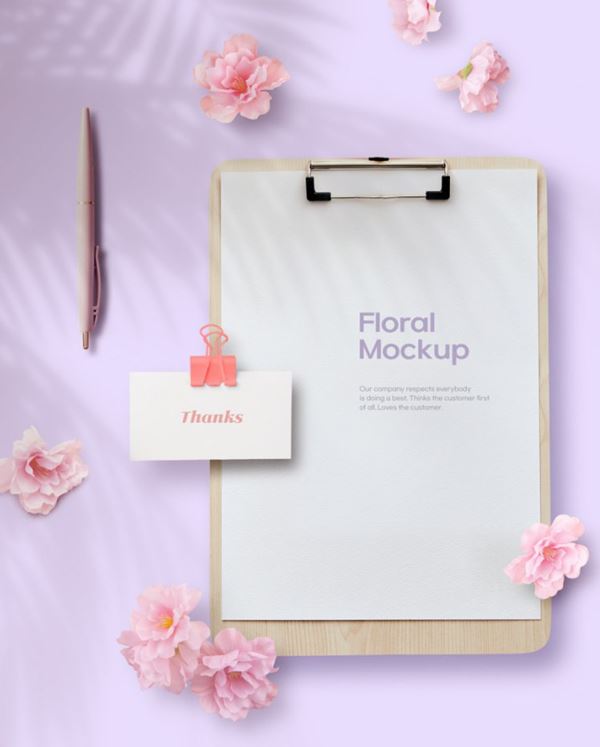 图穷联素材库 » 粉色春天春季花朵花瓣树叶樱花花卉场景剪贴板装饰样机PSD海报模板