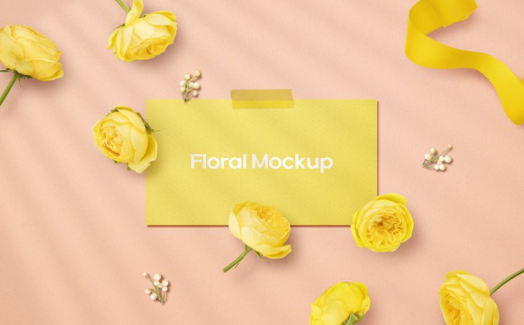 图穷联素材库 » 黄色花朵春天春季花瓣花卉场景卡片明信片装饰样机PSD海报模板
