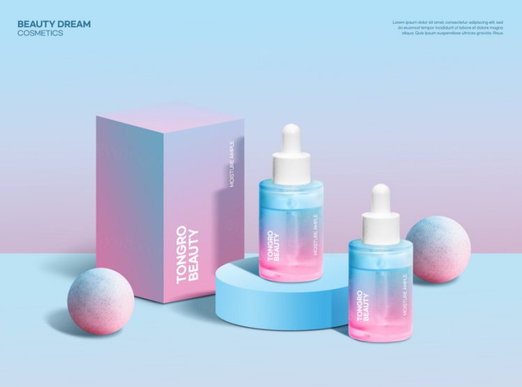 图穷联素材库 » 春天高级渐变色日常护肤美容化妆品抽象宣传海报横幅PSD模板