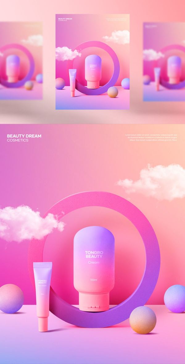 图穷联素材库 » 春天高级渐变色日常护肤美容化妆品抽象宣传海报横幅PSD模板