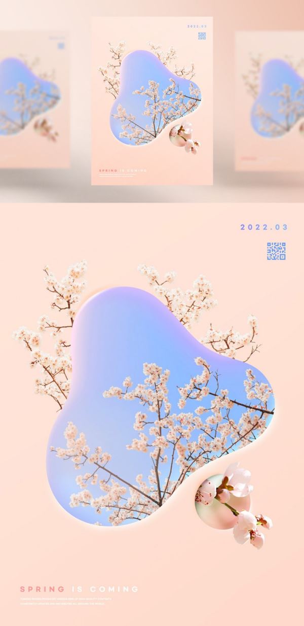 图穷联素材库 » 粉色春季春天樱花桃花花卉植物合成海报PSD模板