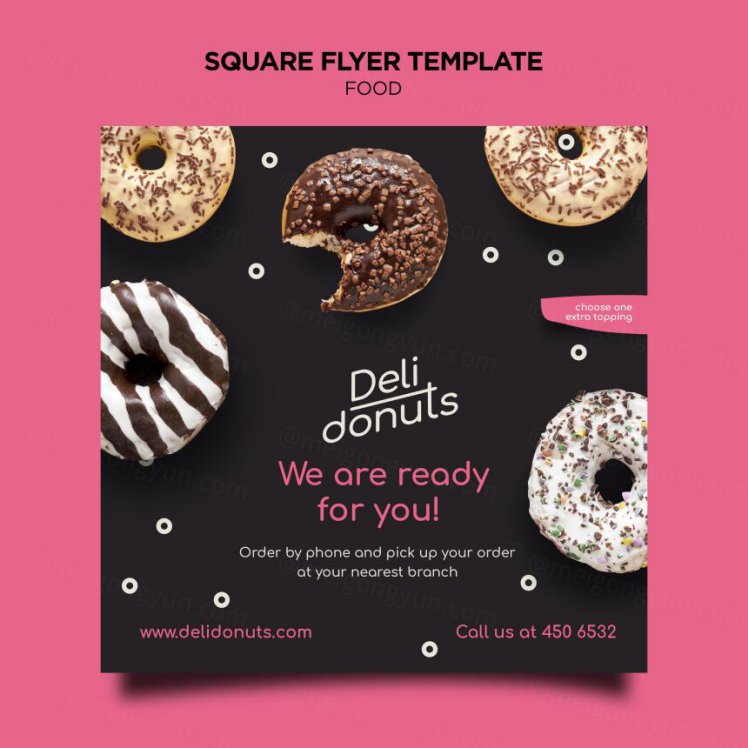 图穷联素材库 » 美味甜甜圈咖啡店快餐店正方形单页传单海报设计PSD模板素材 Poster Template