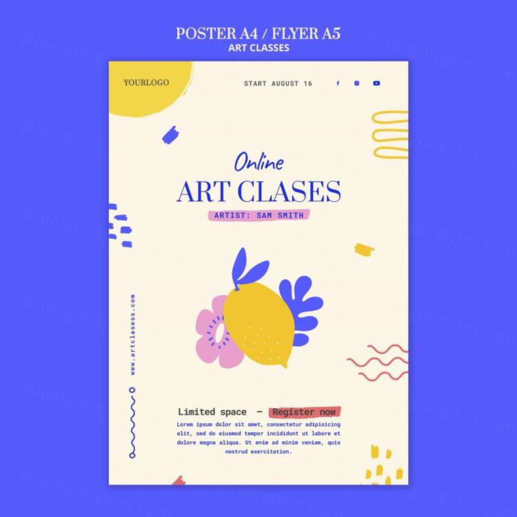 图穷联素材库 » 儿童稚嫩可爱手绘涂鸦几何艺术课堂培训班方形A4宣传单设计PSD模板素材