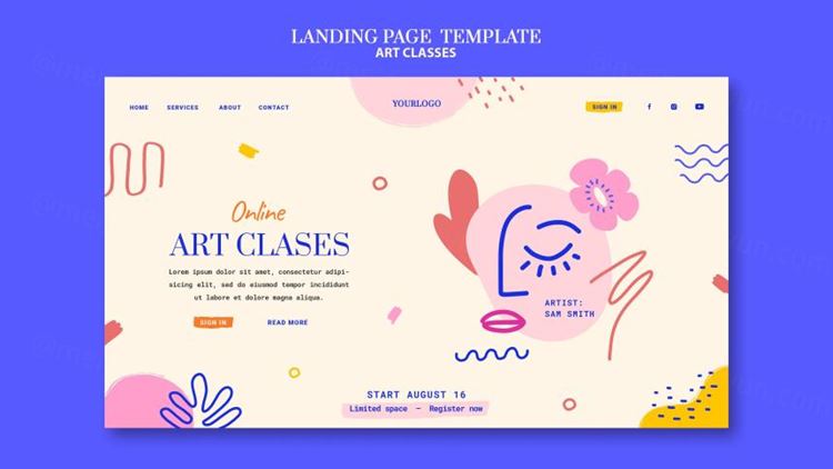 图穷联素材库 » 儿童稚嫩可爱手绘涂鸦几何艺术课堂培训班网页落地页宣传海报横幅设计PSD模板素材