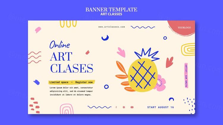 图穷联素材库 » 儿童稚嫩可爱手绘涂鸦几何艺术课堂培训班网页落地页宣传海报横幅设计PSD模板素材