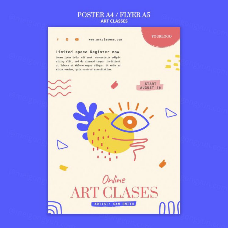 图穷联素材库 » 儿童稚嫩可爱手绘涂鸦几何艺术课堂培训班方形A4宣传单设计PSD模板素材