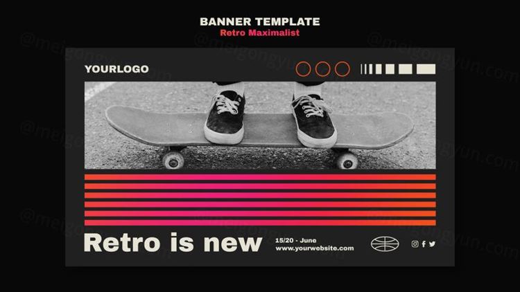 图穷联素材库 » 时尚潮流复古渐变线条极简主义排版设计海报横幅模板素材 Retro maximalist template