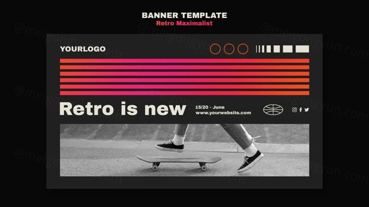 图穷联素材库 » 时尚潮流复古渐变线条极简主义排版设计海报横幅模板素材 Retro maximalist template