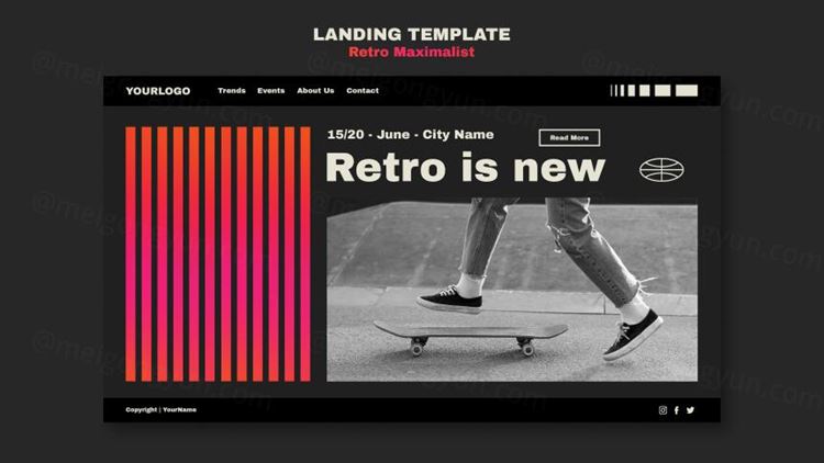 图穷联素材库 » 时尚潮流复古渐变线条极简主义排版设计落地页横幅海报模板素材