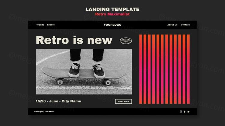 图穷联素材库 » 时尚潮流复古渐变线条极简主义排版设计落地页横幅海报模板素材