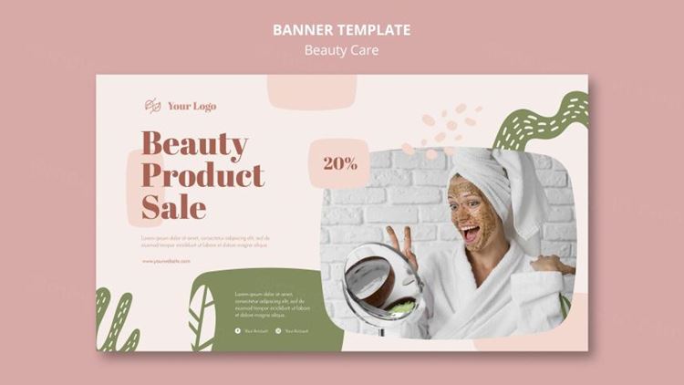 清新化妆美容水疗中心护理保养产品宣传海报PSD模板素材 Beauty Care Template