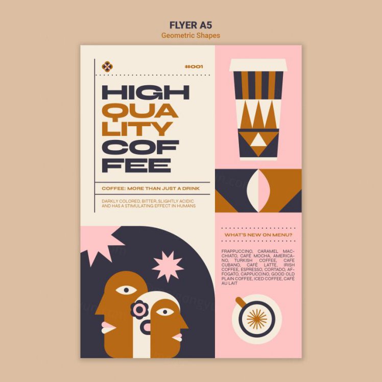 图穷联素材库 » 孟菲斯几何抽象餐厅酒店商品菜单菜谱宣传单海报PSD模板 Geometric shapes template
