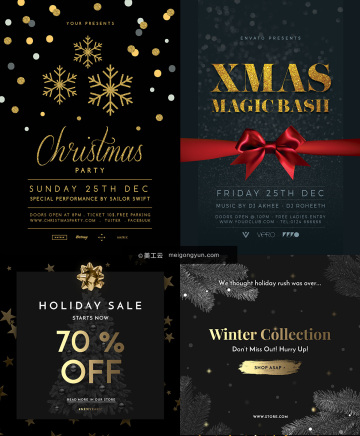 图穷联素材库 » 38款黑金圣诞节素材Merry Christmas