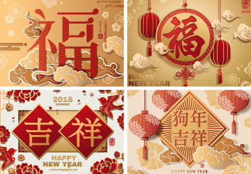 图穷联素材库 » 4款精选春节吉祥祝福矢量海报 Happy New Year