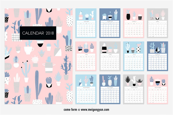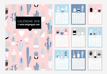图穷联素材库 » 卡通手绘狗年日历台历矢量模板 MGY-4