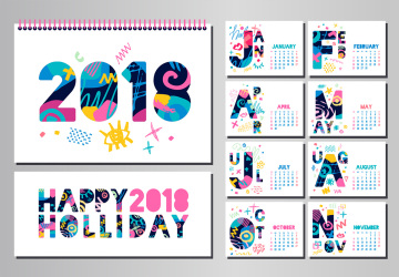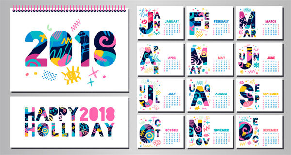 图穷联素材库 » 卡通手绘狗年日历台历矢量模板 MGY-8