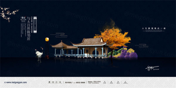 图穷联素材库 » 高端中国风中式房地产广告海报PSD分享 Chinese Characteristics
