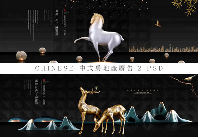 图穷联素材库 » 高端中国风中式房地产广告海报PSD分享 Chinese Characteristics