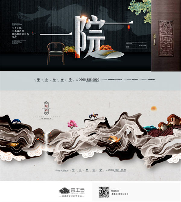 图穷联素材库 » 高端中国风中式房地产广告海报PSD分享 Chinese Characteristics