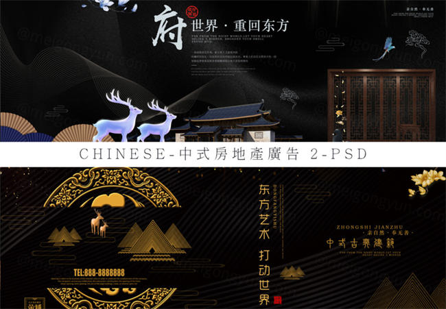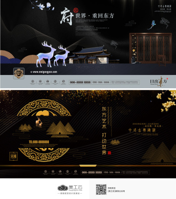 图穷联素材库 » 高端中国风中式房地产广告海报PSD分享 Chinese Characteristics