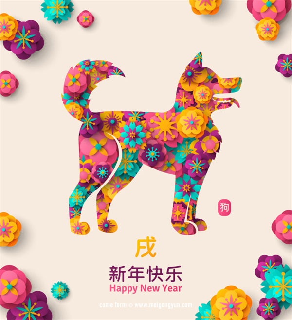 图穷联素材库 » 狗年新春春节海报矢量源文件-Happy-New-Year