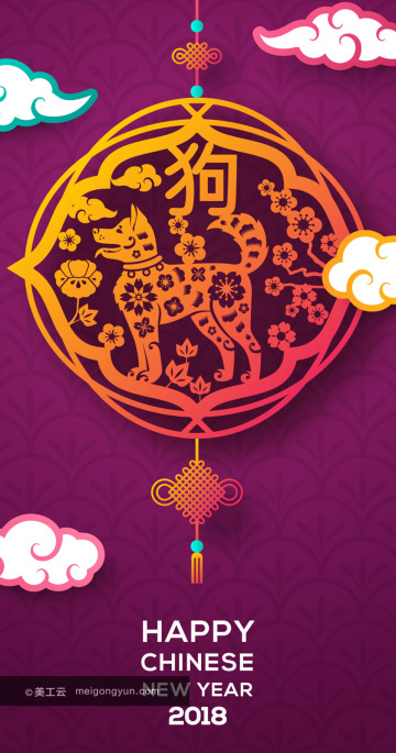 图穷联素材库 » 狗年新春春节海报矢量源文件-Happy-New-Year